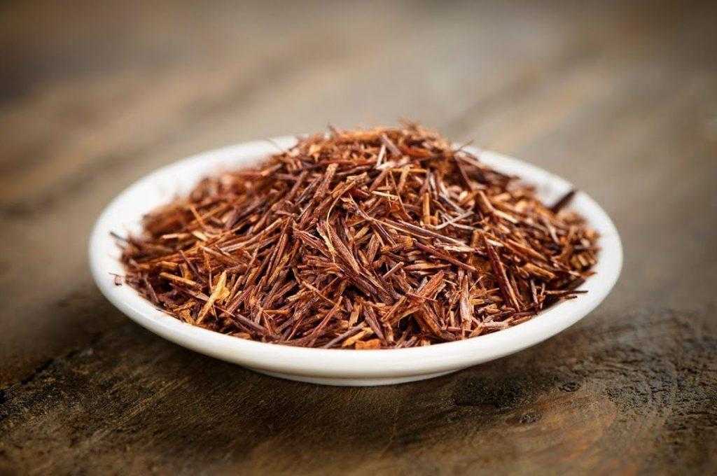 Ройбуш – кустарник, листья которого используют при производстве этого напитка, произрастает в Южной Африке. В его составе отсутствует кофеин, зато содержится много витамина С, железо, цинк, магний, фтор и калий. Ройбуш омолаживает организм, нормализует структуру костной ткани, выводит шлаки и активизирует обменные процессы. Этот чай полезен и для детей, и для пожилых людей.