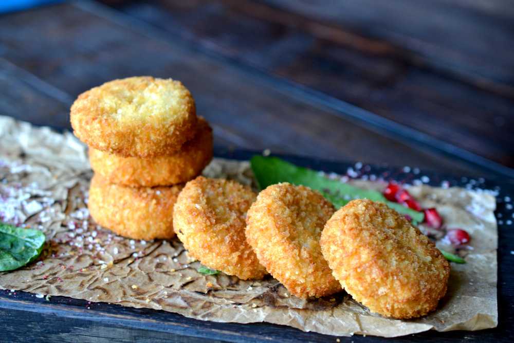 Наггетсы можно сделать не только из цельных кусочков, но и из фарша — мелко рубленного филе. В такие хорошо класть разные добавки, например, мелко порезанную зелень или тертый сыр. Именно с сыром и будет следующий рецепт.