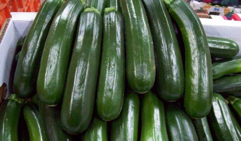 - А у цукини плоды темно-зеленого окраса различных оттенков. Встречаются также полосатые представители и в крапинку.
