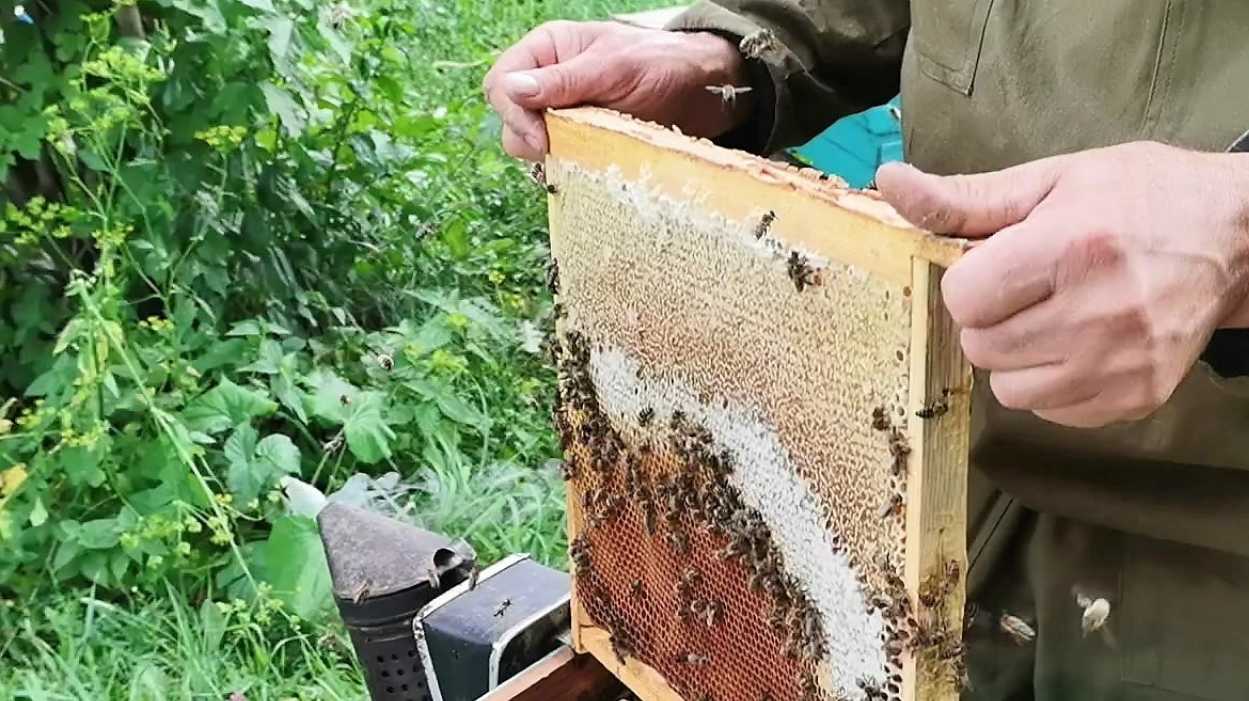 При наличии расплода на медовой рамке лучше отказать от отбора меда
