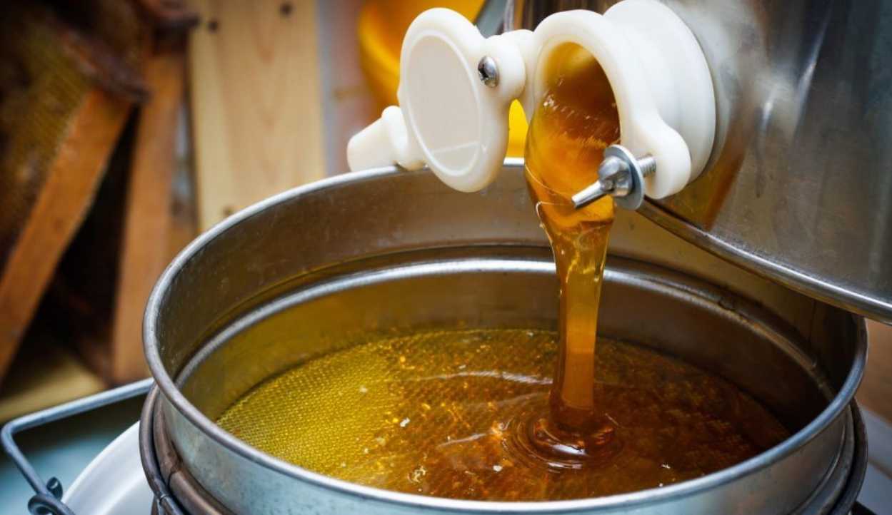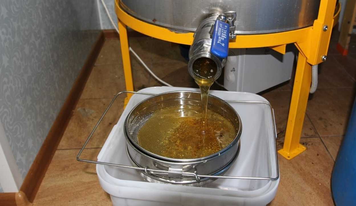 Откачанный продукт сливают через специальное сито. В зрелом меде бегущая струя образует холмик.