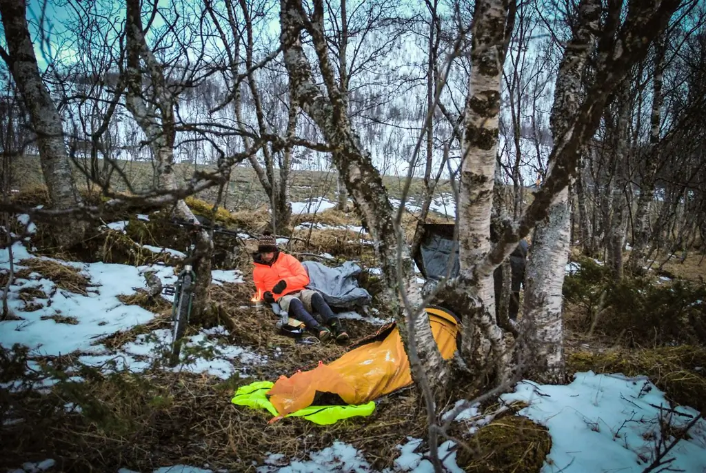 Самая низкая температура, которую я испытал, была -8 ° C, тогда как самая высокая в Осло была 24 ° C. Упаковка материалов для этого огромного температурного диапазона была ужасно трудной, так как собирала их в 3 контейнера. Я использовал старый велосипед моей матери, который пылялся в гараже, поскольку я не мог позволить себе новый дорожный велосипед. Было только 10 передач, и 5 из них не работали. Передних корзин не было, поэтому весь вес должен был находиться на заднем колесе. Я выбрал традиционные альпийские методы кемпинга, чтобы сэкономить место, но в глубине души я думаю, что хотел трудного опыта.