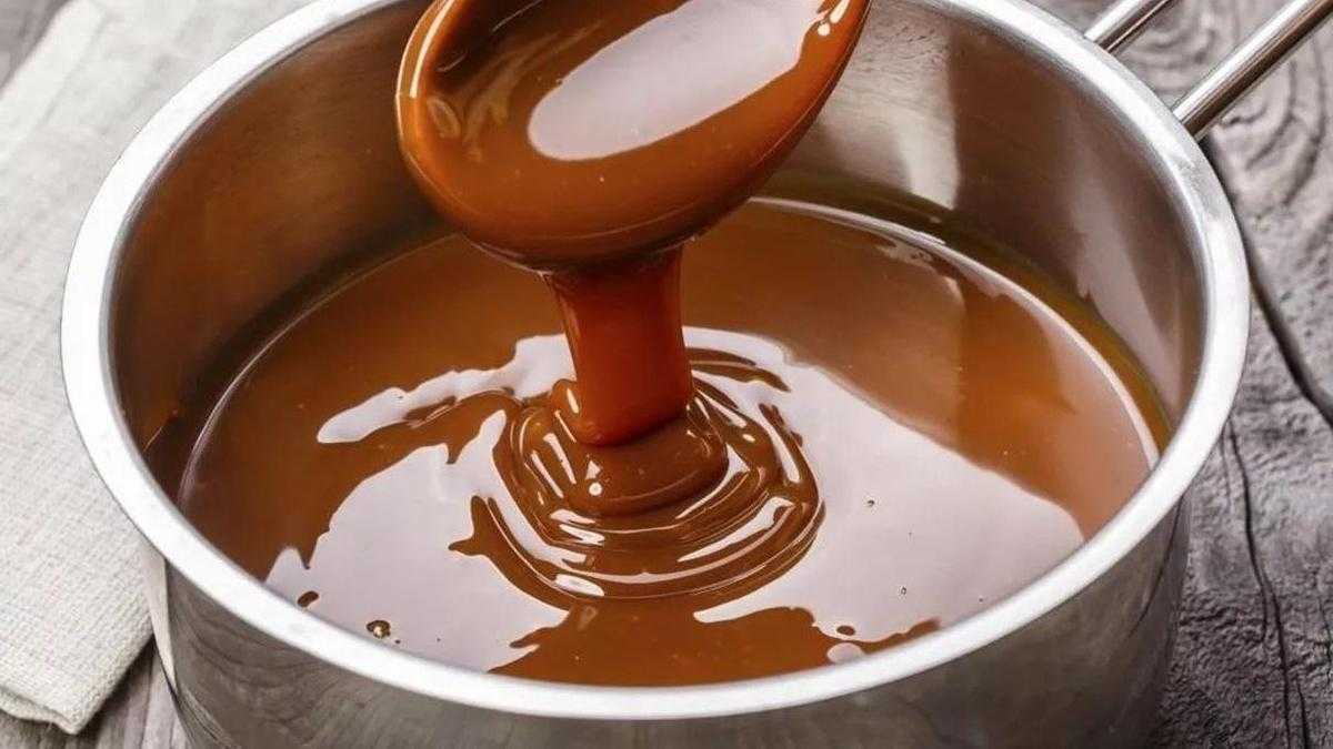 Как только сироп поменяет цвет на тёмно-коричневый, снять с огня и, помешивая венчиком, добавить сливки (осторожно, горячий сироп при добавлении холодных сливок, может брызнуть через край посуды). Вмешать сливочное масло и охладить до комнатной температуры