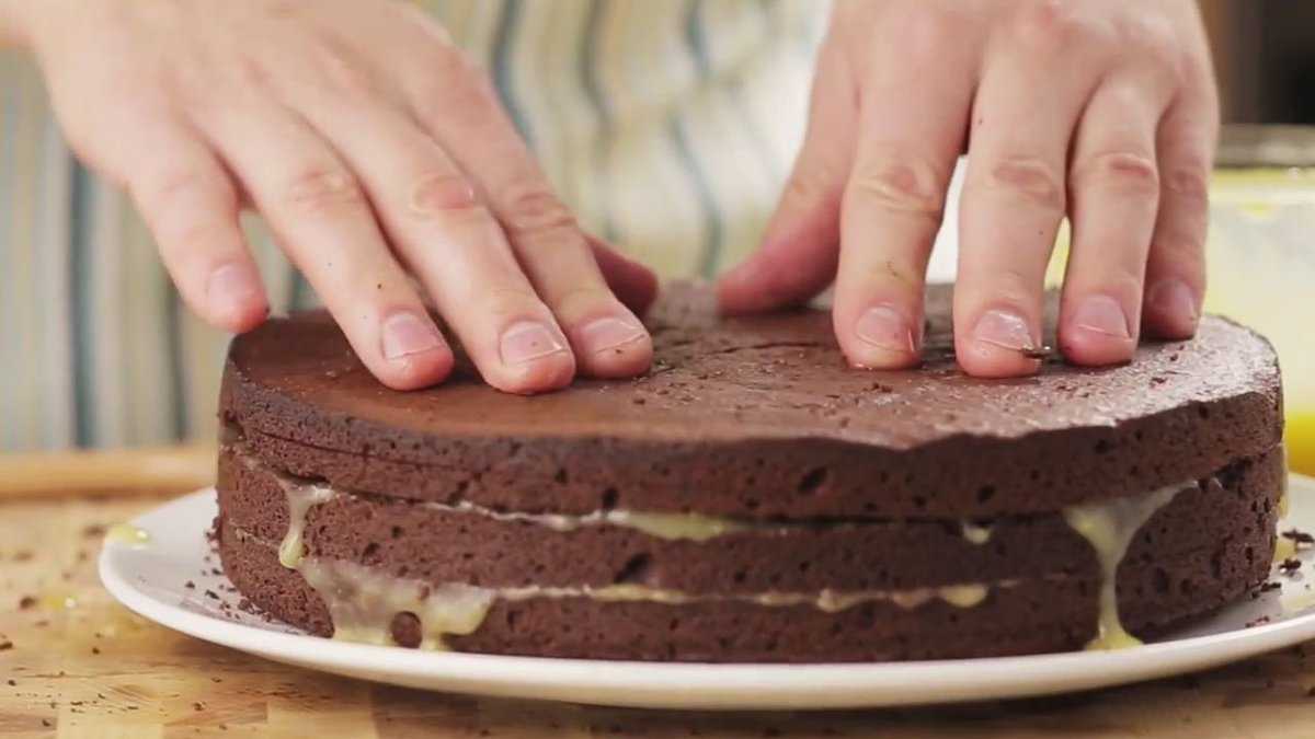 - Второй круг также пропитываю сиропом и щедро смазываю второй половиной крема. Шоколадный торт получается вкуснее, если слои крема не меньше 1 см.