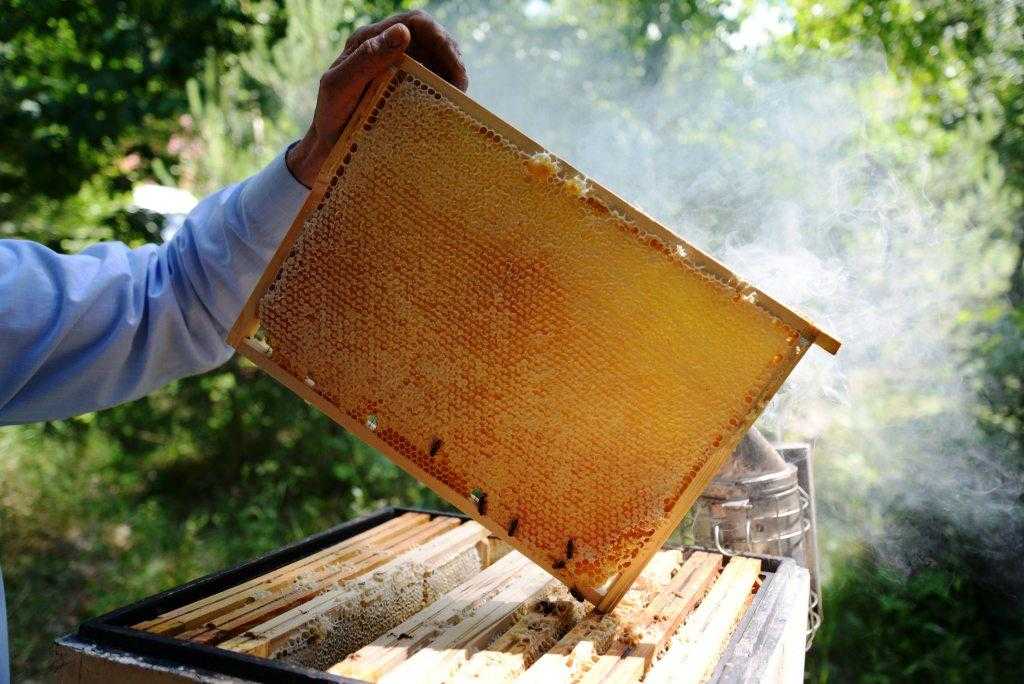 «Если пчёлы запечатали ее на треть, — рассказывает Владимир Николаевич, – то мёд уже получается зрелый. Если рамка открыта, то качать мёд не рекомендуется, потому что в нём много воды, которой пчёлы разбавляют нектар».