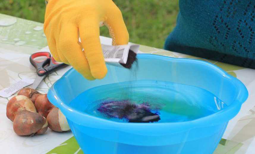 Можно использовать раствор с медным купоросом (30 грамм на 10 литров воды). Луковицы выдерживают в емкости с раствором примерно 2 часа.