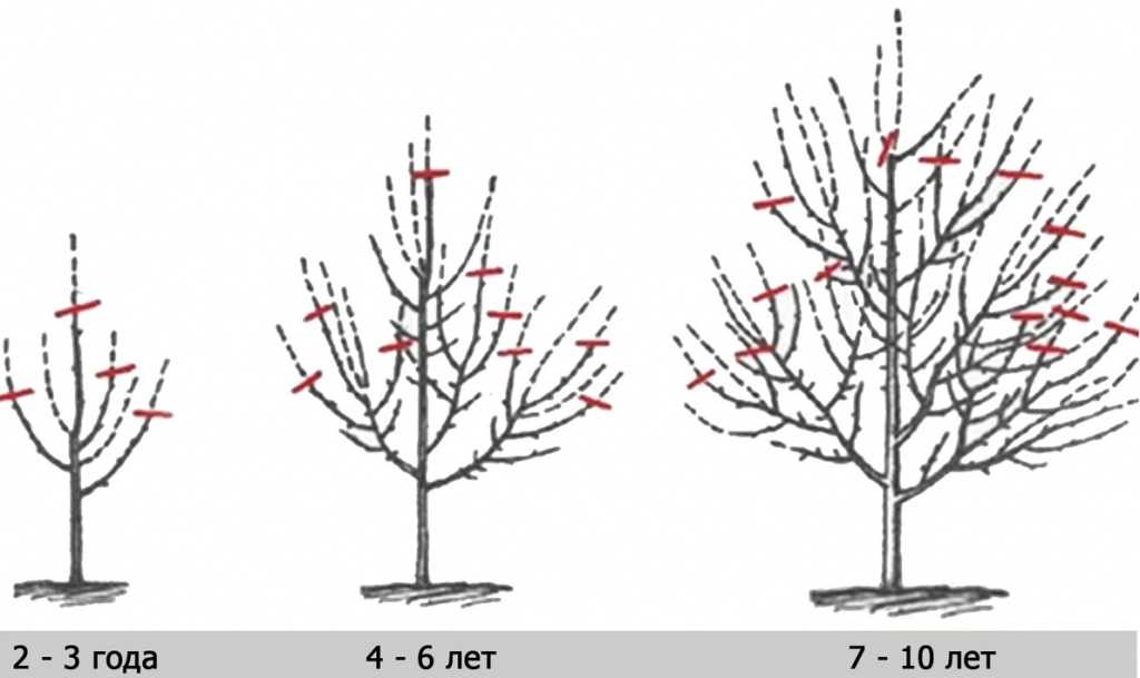 Формировать дерево начинают уже со второго года после посадки (лучше намечать на весну, но можно и осенью):