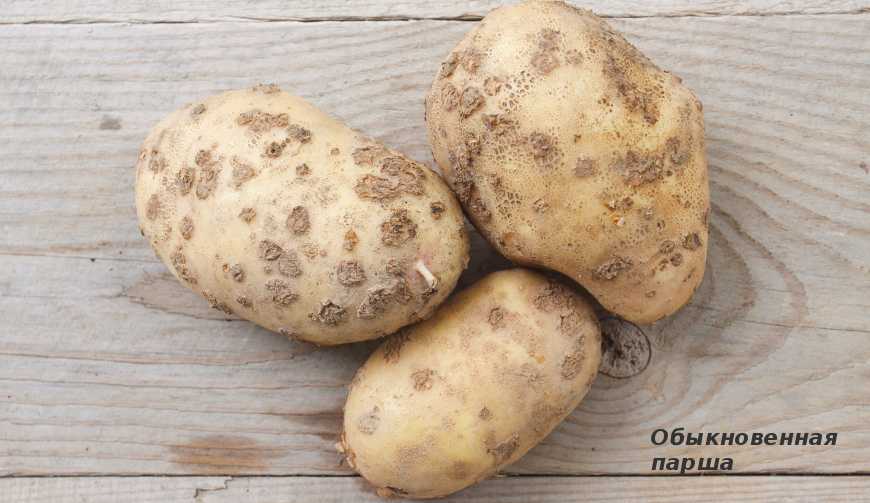 Парша обыкновенная имеет несколько разновидностей: при плоской парше на кожуре появляются повреждения в виде плоских участков отвердения и опробковения; при глубокой образуются ямки, окруженные разорванной кожурой; выпуклая парша формирует бугорки, напоминающие бородавки с углублением в центре; при сетчатой – кожица трескается в разных направлениях.