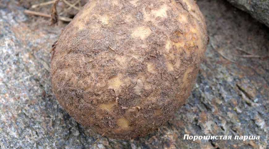 Серебристая парша поражает 40% клубня, он сморщивается и становится невкусным. Сверху пятна коричневые, а мякоть под кожурой серая. Картофелины, пораженные порошистой паршой, покрыты наростами, сначала светлыми, потом коричневыми. Любой вид парши ухудшает вкус клубня, становится причиной гниения и плохого хранения.
