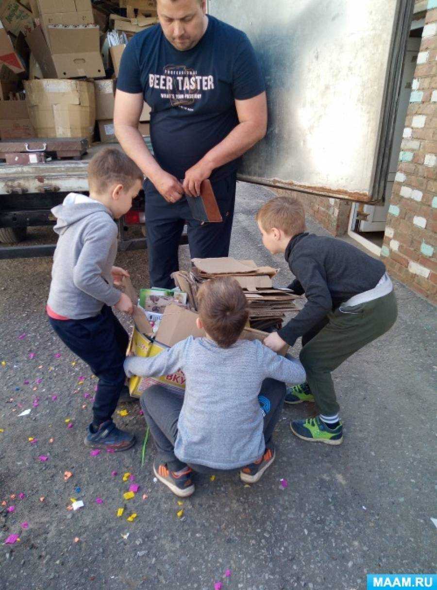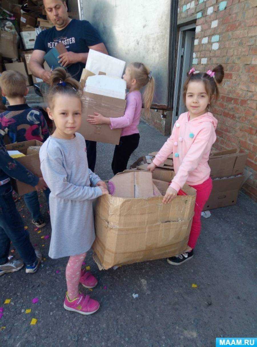 С большим энтузиазмом в акции участвовали воспитанники и родители, которые приносили старые газеты, журналы, книги, картонные упаковки. Вывоз, взвешивание и сдачу макулатуры в пункт приема на вторичную переработку проводили 25 апреля 2019 года.