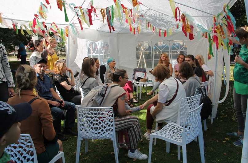 В секции «Творческие сообщества для мам и пап» Александра Александрова, руководитель «Поющих мам», представила свой проект и ответила, почему его участникам так нравится петь вместе. Мария Батрасова, представитель «Мамтеатра», рассказала, как делиться эмоциями, трансформировать, управлять и выражать их с помощью актерских техник. Полина Готлиб и Дарья Выборова, проект «Ридуче-дучи», дали советы, как привить привычки экологического творчества.
