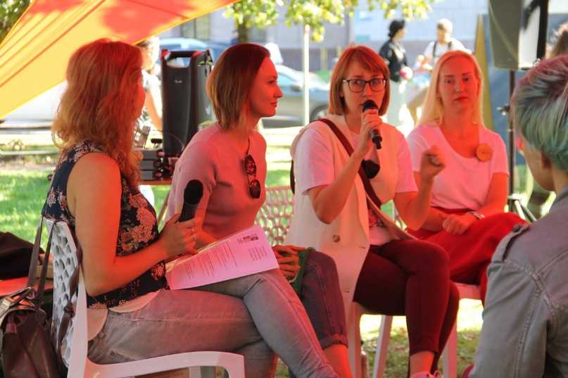Во время дискуссии Вера Загребина, основатель коворкинга «Офис мам», рассказала, насколько такие пространства актуальны для молодых мам, желающих работать в декрете. Пояснила, что коворкинги для мам имеют свои особенности – наличие няни, усеченное время работы, небольшой размер.