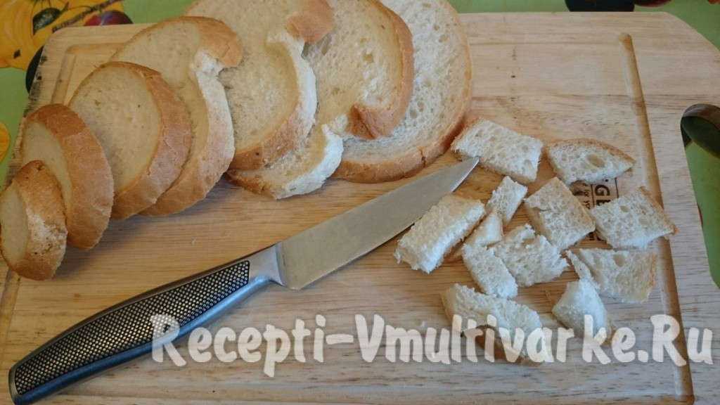 Помещаем нарезанный хлеб в чашу мультиварки.