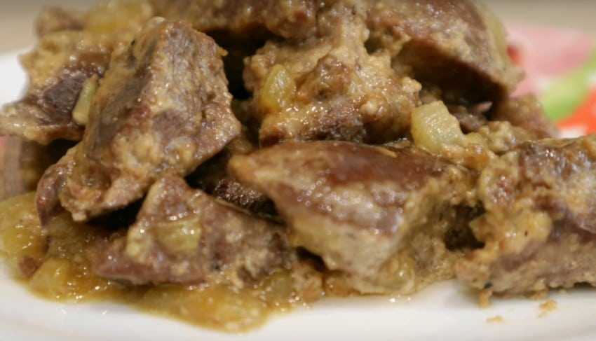 Тем, кто предпочитает питаться правильно, обязательно нужно включить в своё меню блюдо из свиной печени, приготовленное по этому рецепту. Калорийность мяса «По-строгановски» составляет всего 150 Ккал (на 100 грамм), к тому же в нём сохраняются все полезные для здоровья витамины.
