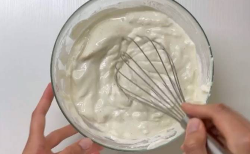 Смешать в миске сгущенное молоко и сметану до однородной массы.