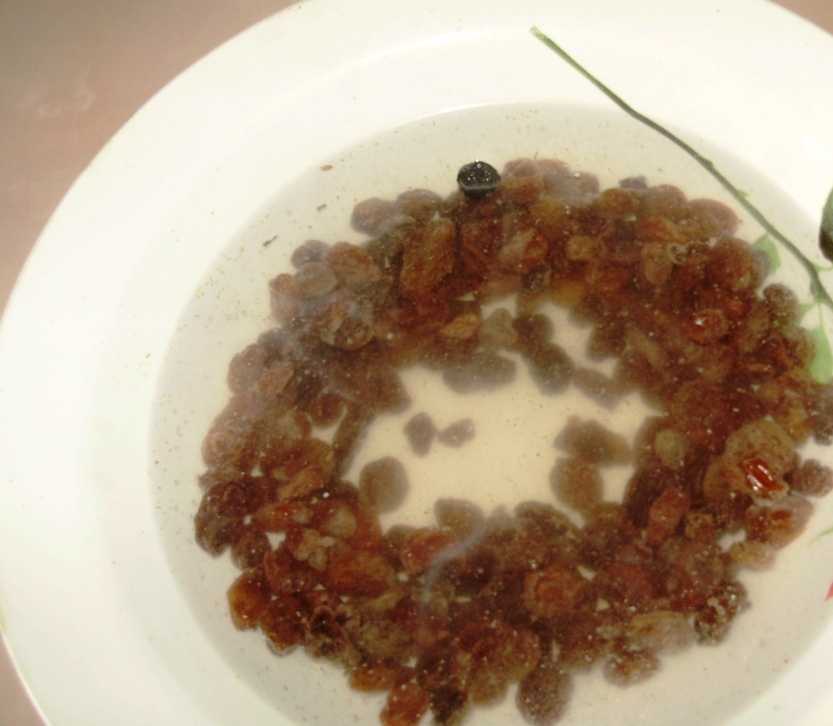 Чтобы приготовить отвар, нужно поместить изюм в небольшую емкость и залить вскипяченной водой, дать настояться в течение 20-30 минут. Затем следует процедить отвар и добавить немного лимонного сока и меда.