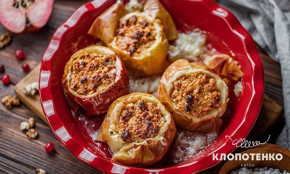 Печеные яблоки с творогом и орехами