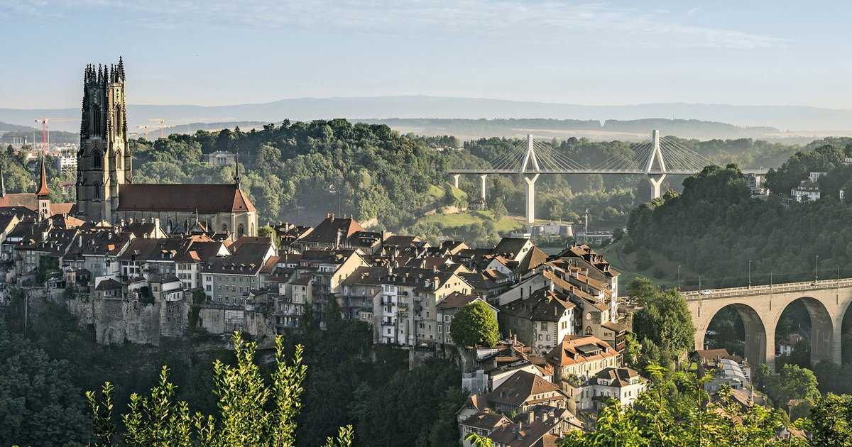 Fribourg — хорошо сохранившийся старый город с типично французской архитектурой. Один из самых впечатляющих городов Швейцарии: зависший на склоне горы, с обилием узких извилистых улочек и сохранившейся крепостной стеной.