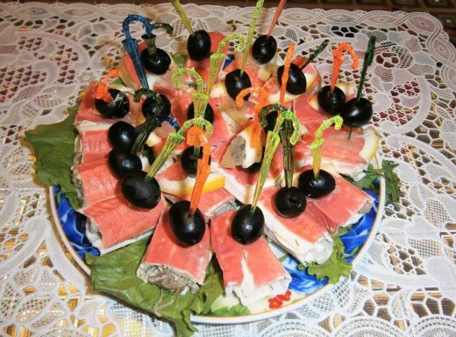 Так же можно еще делать не с ветчиной, а с беконом. Но их придется немного потомить в духовке, об этом мы писали в посте: Закуски на новый год 2020: простые, но очень вкусные.