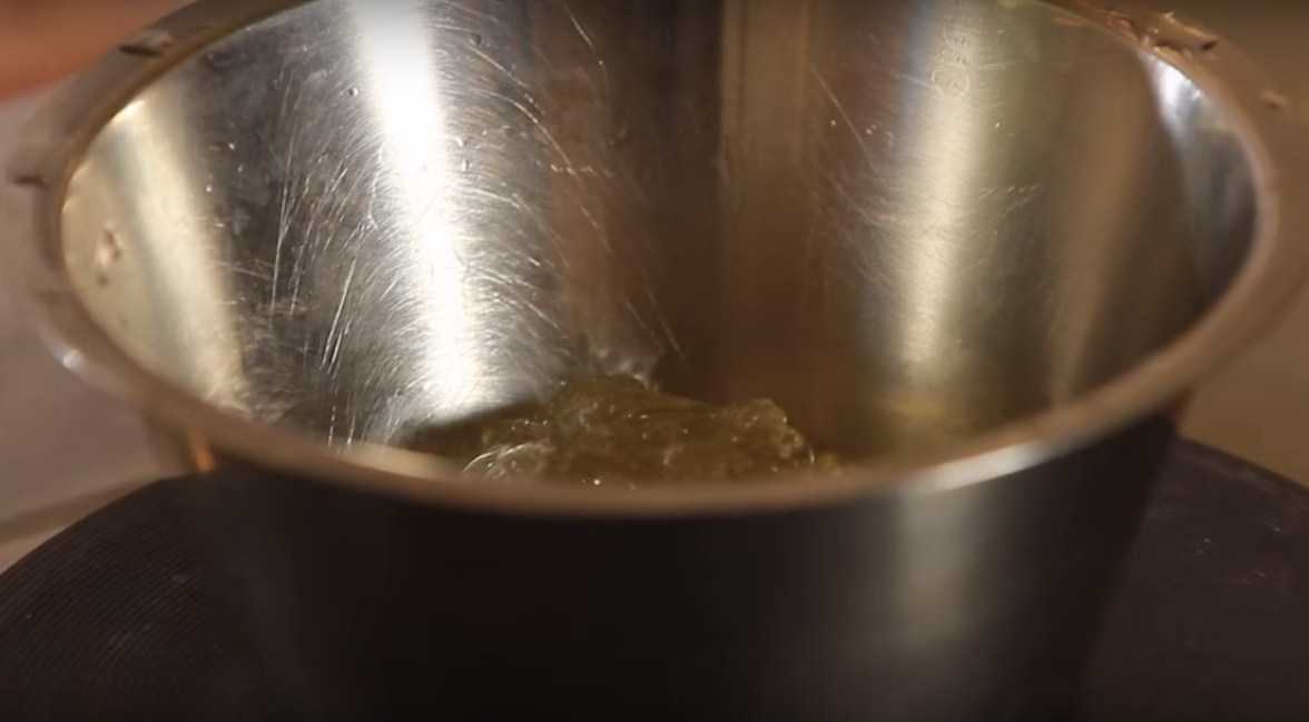 Но по мере нагрева, при постоянном помешивании, он начинает таять и полностью превращается в полупрозрачную жидкость. Это значит желатин готов.
