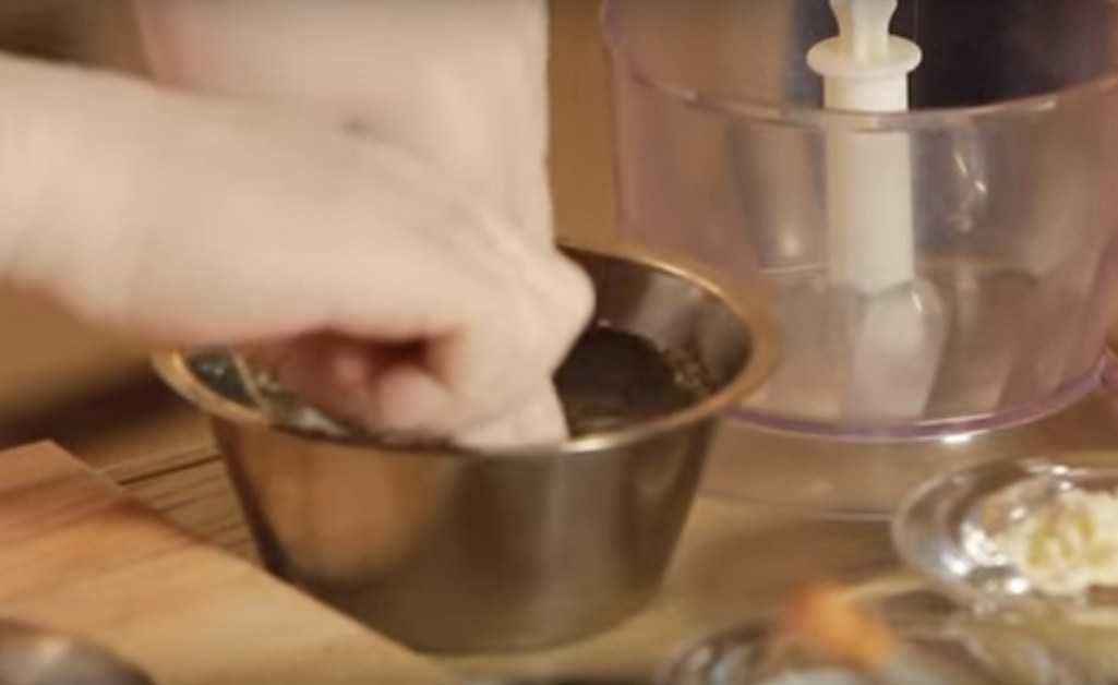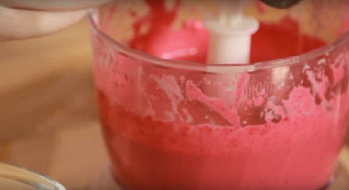 9. К этому моменту желатин наверняка уже загустел. Растопите его на водяной бане и отправьте к получившейся смеси. Всё перемешав отправляем в холодильник буквально на 5-10 минут.