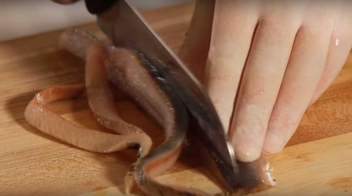 - Рыбу почистить от костей и всего лишнего. Порезать небольшими квадратиками.