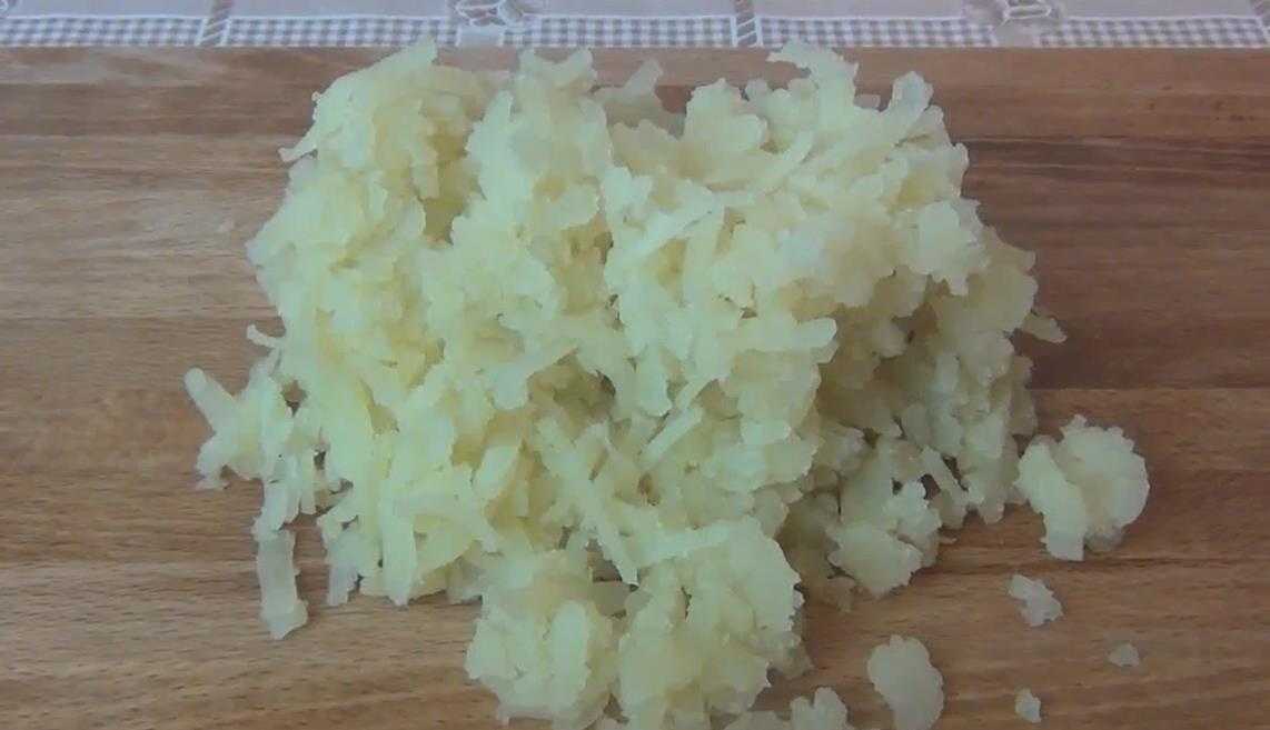 1. Продукты очистить, сварить и натереть на крупной терке.