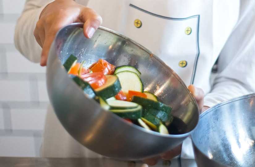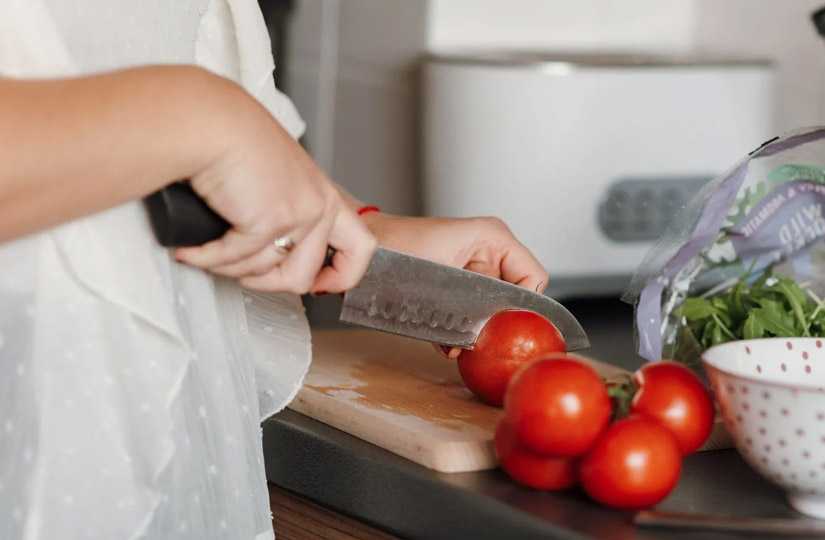 Для равномерной прожарки овощи нужно нарезать одинаковыми ломтиками