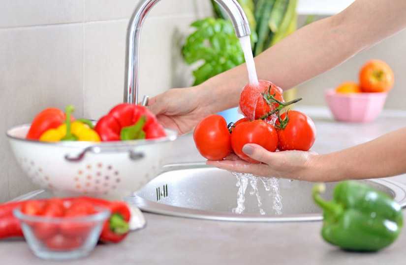 - Вымойте все, лук с чесноком очистите, удалите семена с перцев, плодоножки у кабачков и баклажанов.