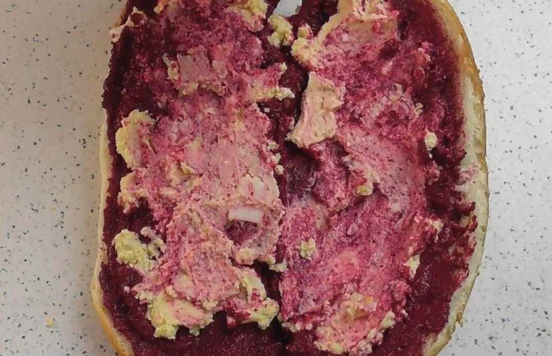 Мягкий сыр смешиваем с соусом, достаточно будет добавить пару столовых ложек и укладываем свекольного слоя.