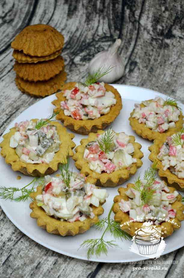 Наполненные салатом корзиночки можно двое суток хранить в холодильнике.