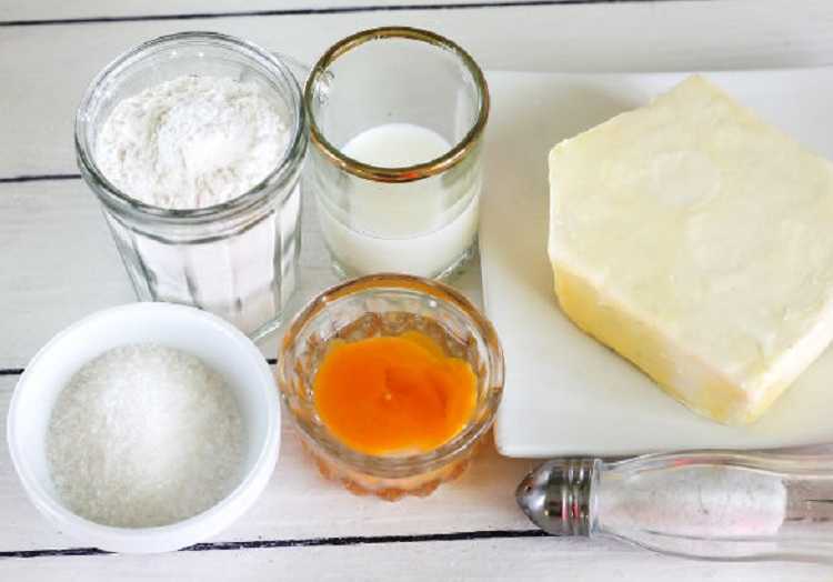 Для приготовления сладких корзиночек по данной рецептуре, понадобятся следующие ингредиенты: