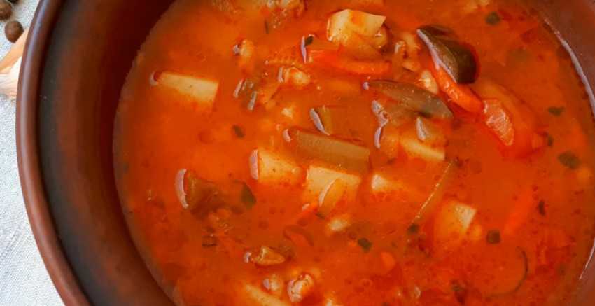 Рассольник с солеными грибами и огурцами